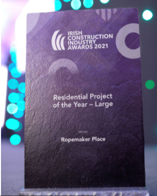 Cogent celebrated two project wins at last night’s Irish Construction Industry Awards – Ropemaker Place and Grangegorman TU Campus.