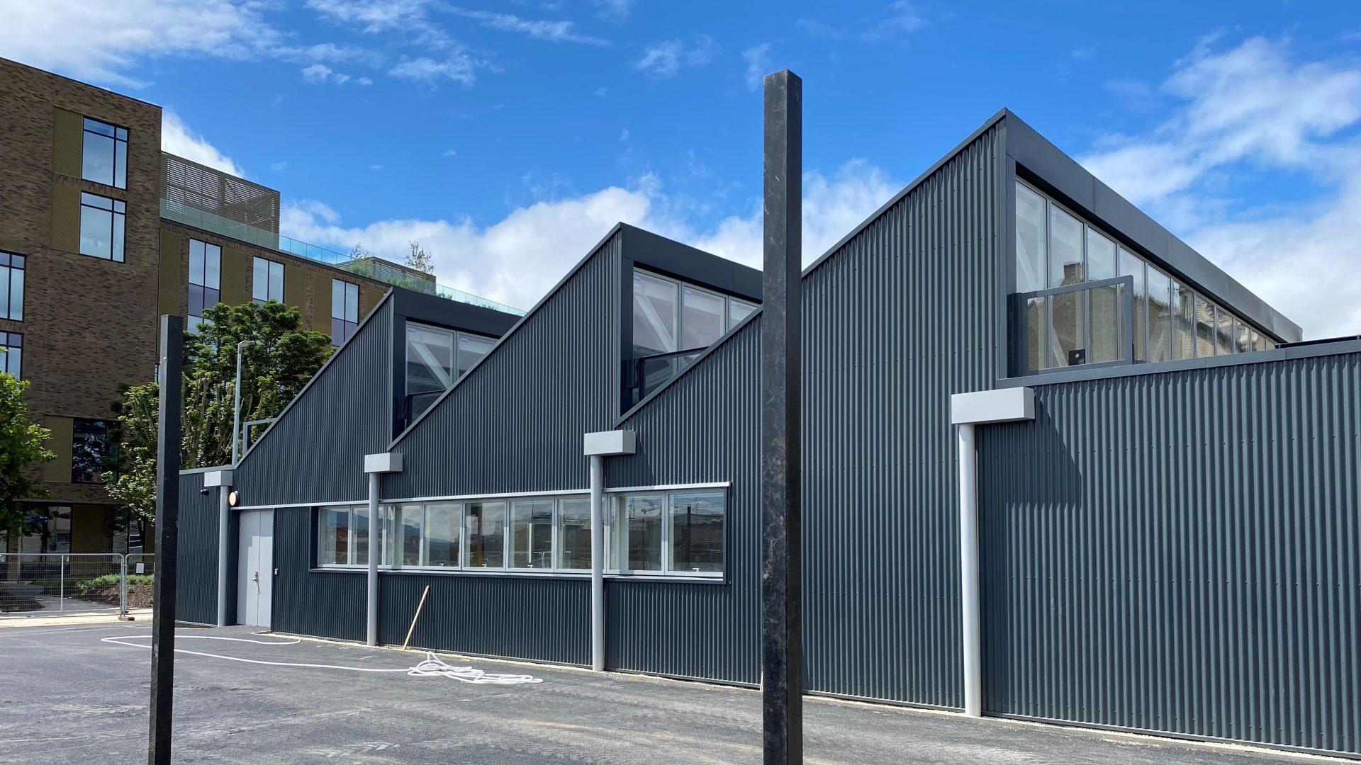 The Sports Facilities and Estates Accommodation were delivered using modular prefabricated construction for speed of construction for temporary accommodation solutions while the wider campus was developed. It provides changing facilities & showers for TUD Sports Department and its athletes, together with additional office & canteen space for the estates team at Grangegorman.
